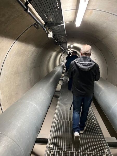 Am 18.April brachen 13 Senioren/innen um 9.30 Uhr mit dem Zug nach Köln-Deutz auf, um den Fernwärmetunnel unter dem Rhein in Köln zu besichtigen. Der Einstig des Tunnels am Rande des Messegeländes brachte uns über Gitterrosttreppen 30 m in die Tiefe. Unten angekommen erklärte uns ein Herr der Rheinenergie zunächst den Bau des Tunnels. Weiter führte er dann aus, wo die Wärme erzeugt wird und wie sie zum Verbraucher gelangt. Dann ging es durch den Tunnel, der 461 m lang ist. Die Röhre selbst hat im Inneren einen Durchmesser von 3 m, der Rhein fließt zwischen 3 und 5 m darüber. In der Mitte des Tunnels wurde eine kurze Rast eingelegt, um zu hören, ob gerade ein Schiff über uns hinweg fuhr. Weiter ging es bis zum Ausstieg, der sich in einem Parkhaus in unmittelbarer Nähe zum Hauptbahnhof befindet. Hier waren, um wieder das Tageslicht zu erreichen 100 Stufen aufwärts zu bewältigen. Das Augustiner Brauhaus am Heumarkt war unser nächstes Ziel zum Mittagessen. Nach dem Essen war noch genügend Zeit, sich ein wenig in Köln umzuschauen. 16.21 Uhr brachte uns ein Zug von Köln Hbf wieder zurück nach Euskirchen. Damit ging ein informativer und geselliger Tag zu Ende.